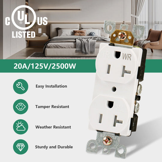 Wengart Receptacle Outlet,Weather Resistant&Tamper Resistant,10pack,20Amp, 125Volt