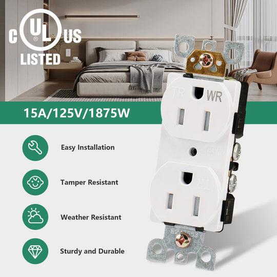 Wengart Receptacle Outlet,Weather Resistant&Tamper Resistant,10pack,15Amp, 125Volt