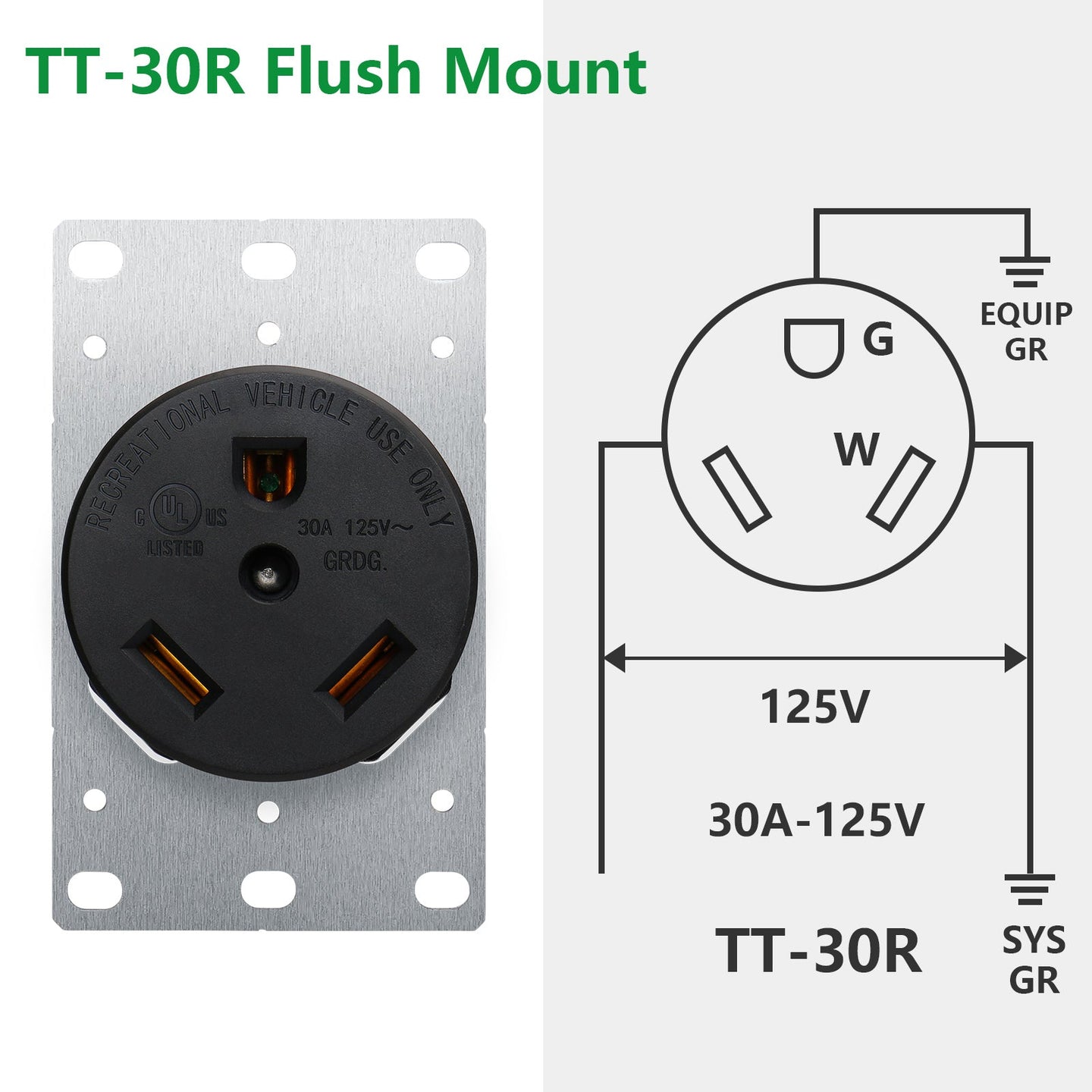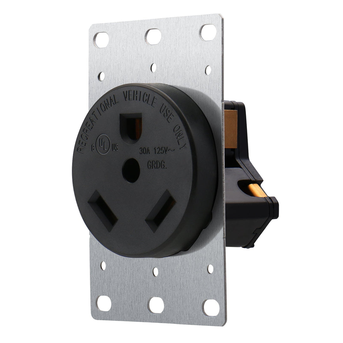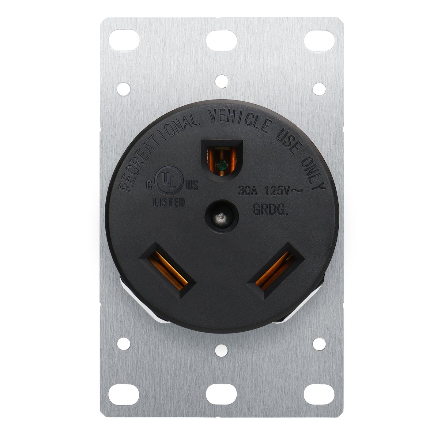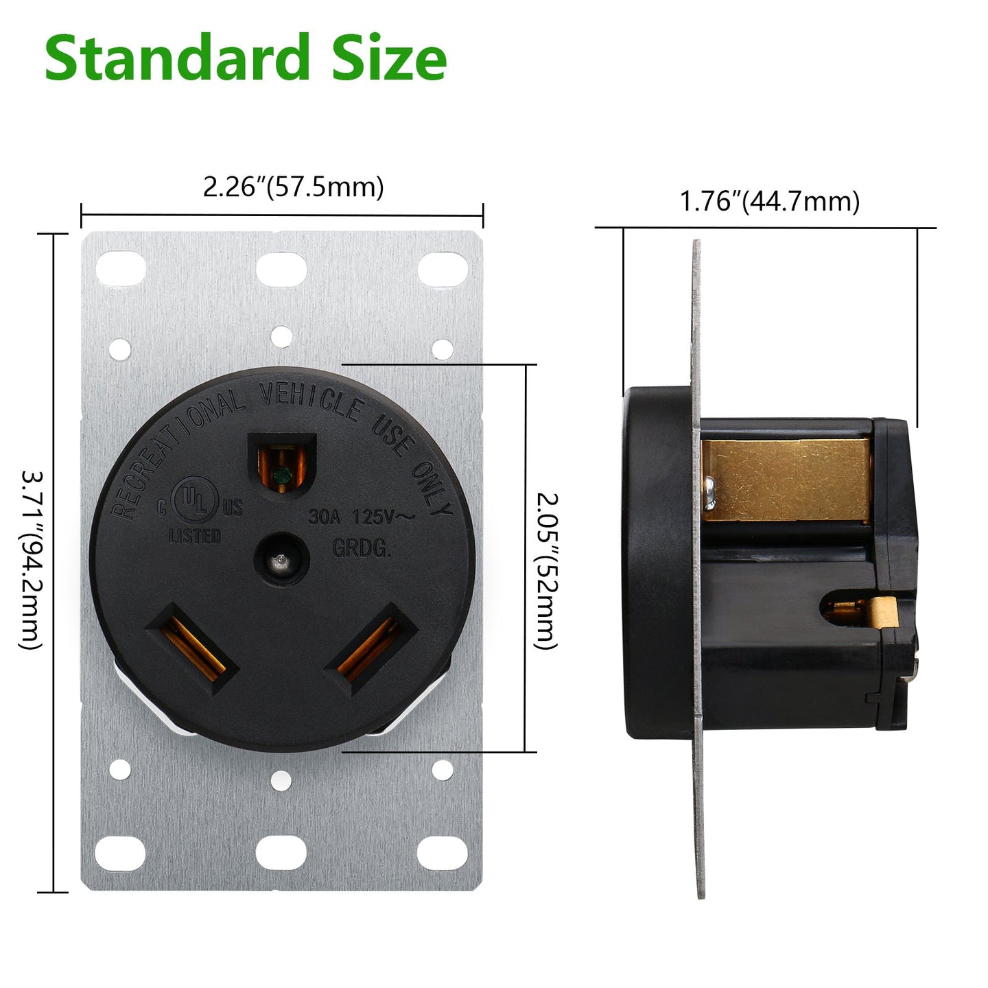 2. This RV power socket has colored screws for easy identification and wiring. The socket is designed to comply with the standardized electrical specifications of the United States and Canada.