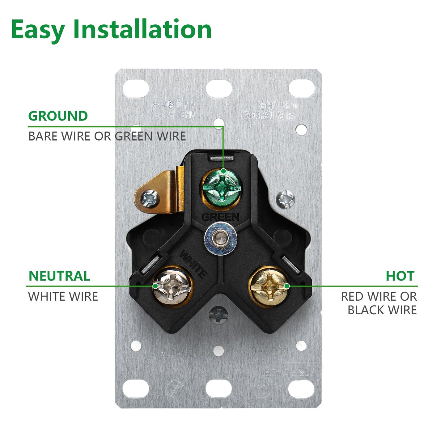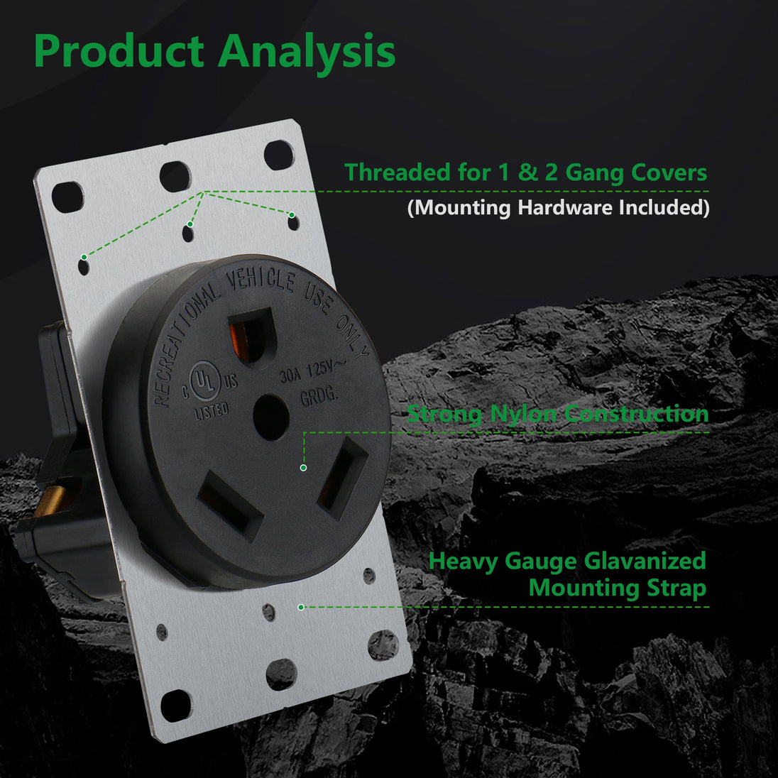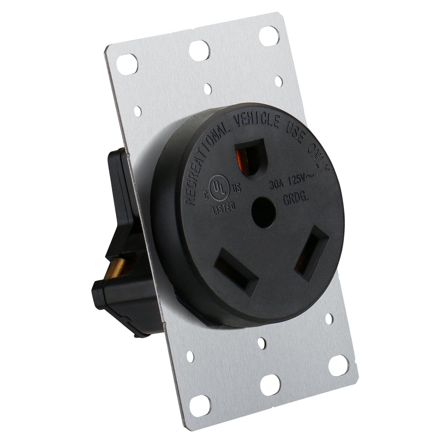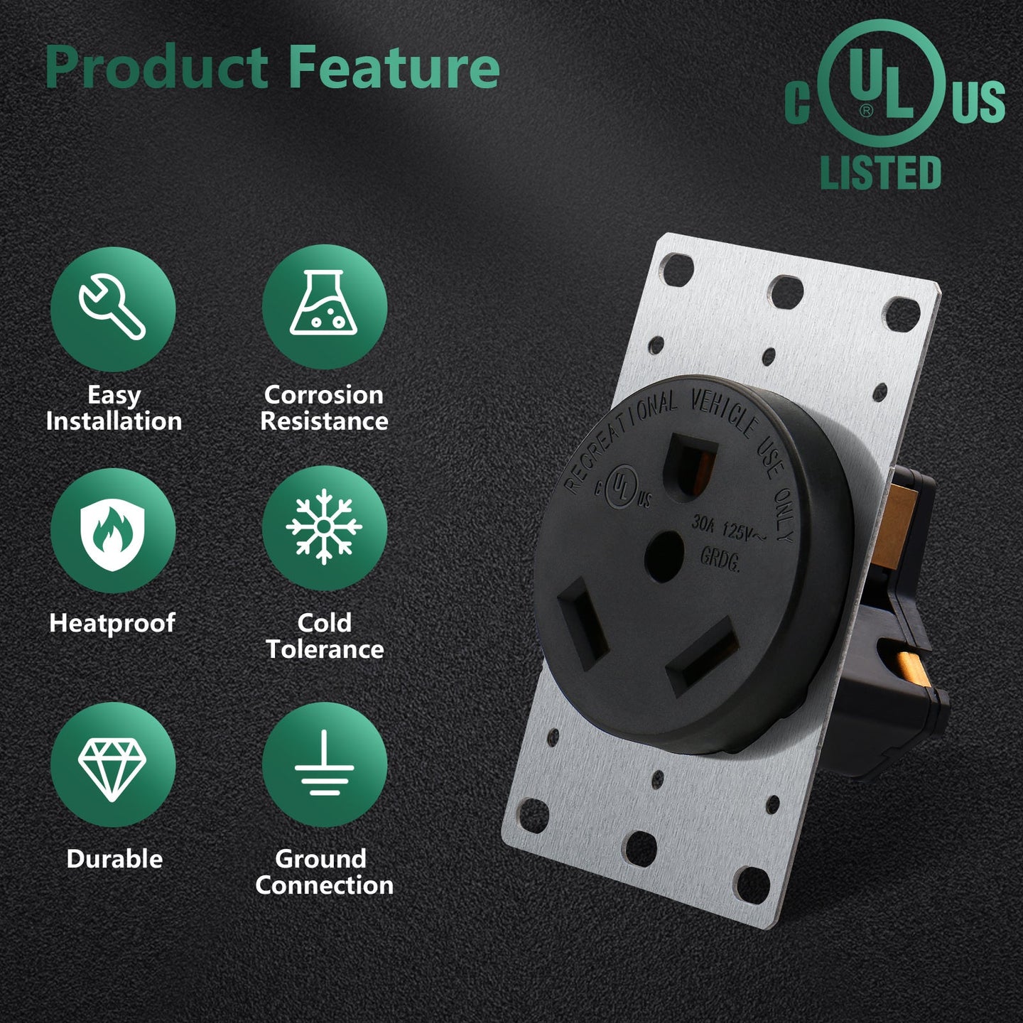 2. This RV power socket has colored screws for easy identification and wiring. The socket is designed to comply with the standardized electrical specifications of the United States and Canada.