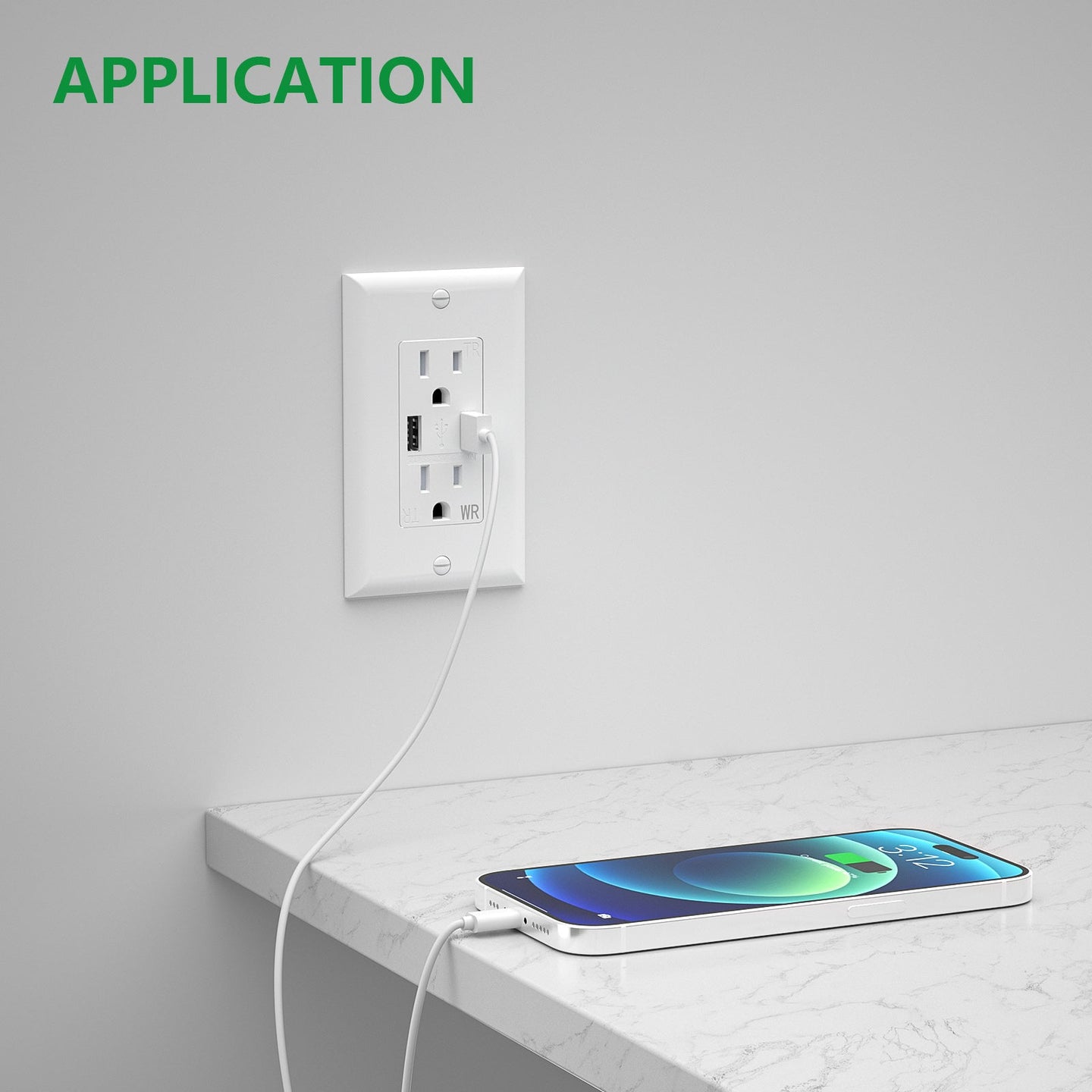 5. Our USB wall outlet is ideal for multiple locations, such as kitchen counters, TV cabinets, offices, and beside beds. The included decorative wall plate adds a modern touch to your home.