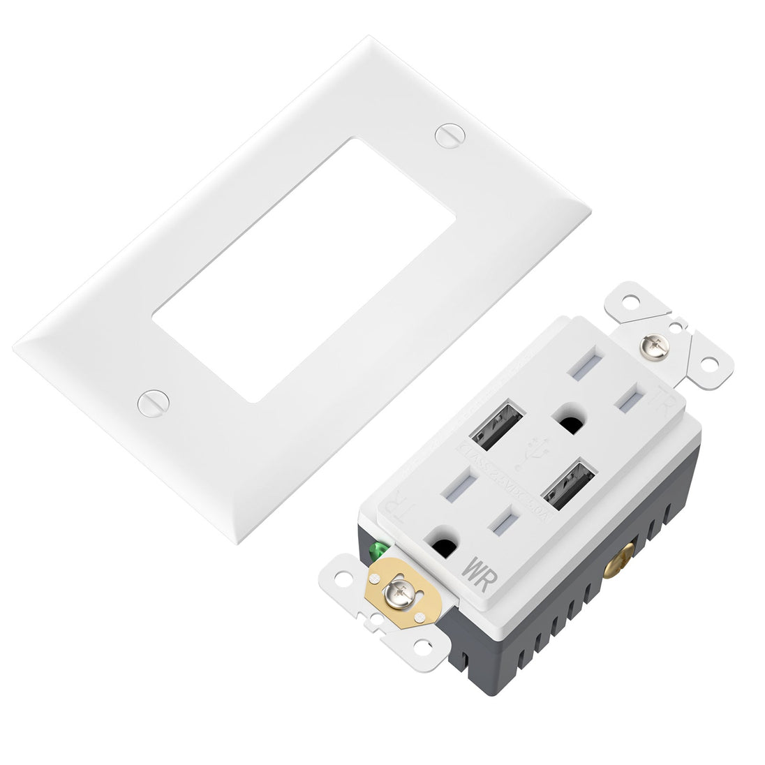 Wengart 15A USB Wall Outlet,Receptacle with 5.0A Dual Type A USB,Weather-Resistant and Tamper-Resistant