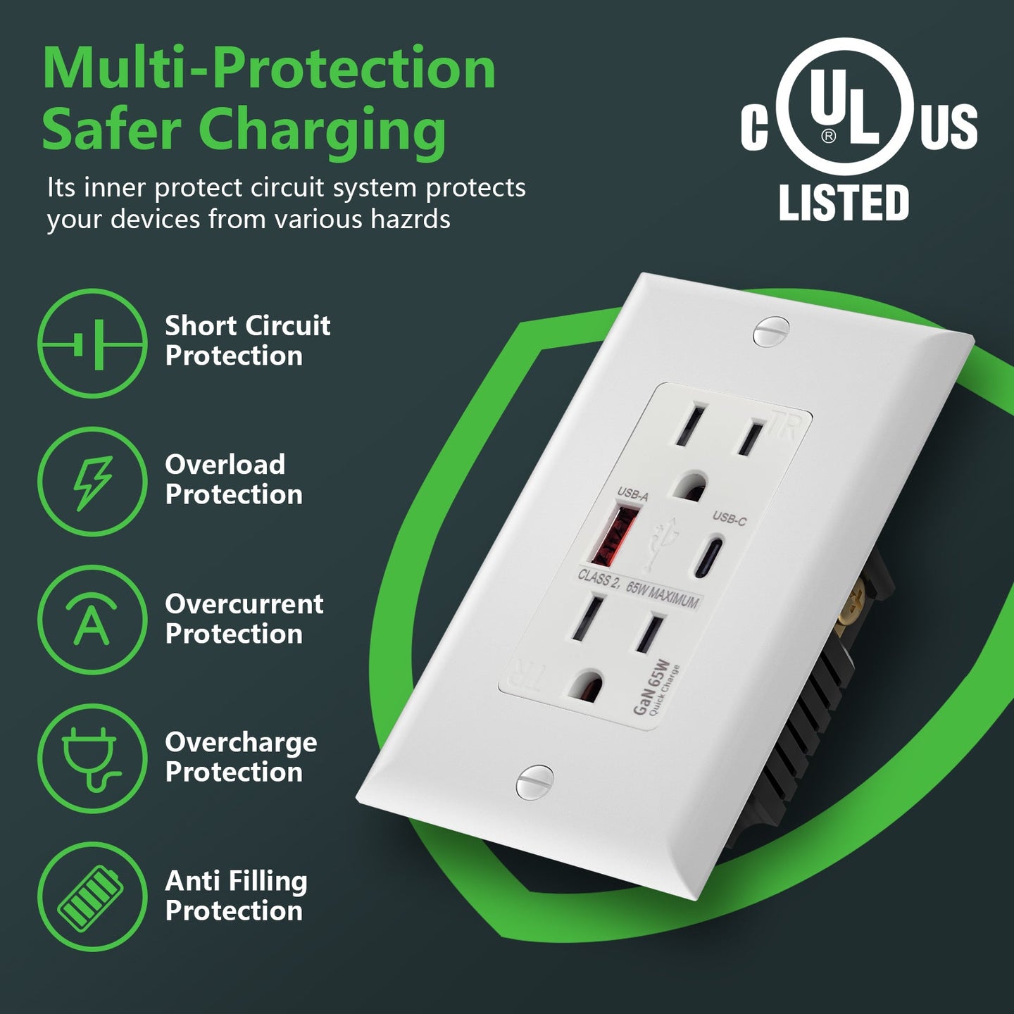 - Easy to install: This 65Wusb socket is compatible with standard wall boxes and wall plates, can directly replace existing sockets, and supports 12 or 14AWG wires