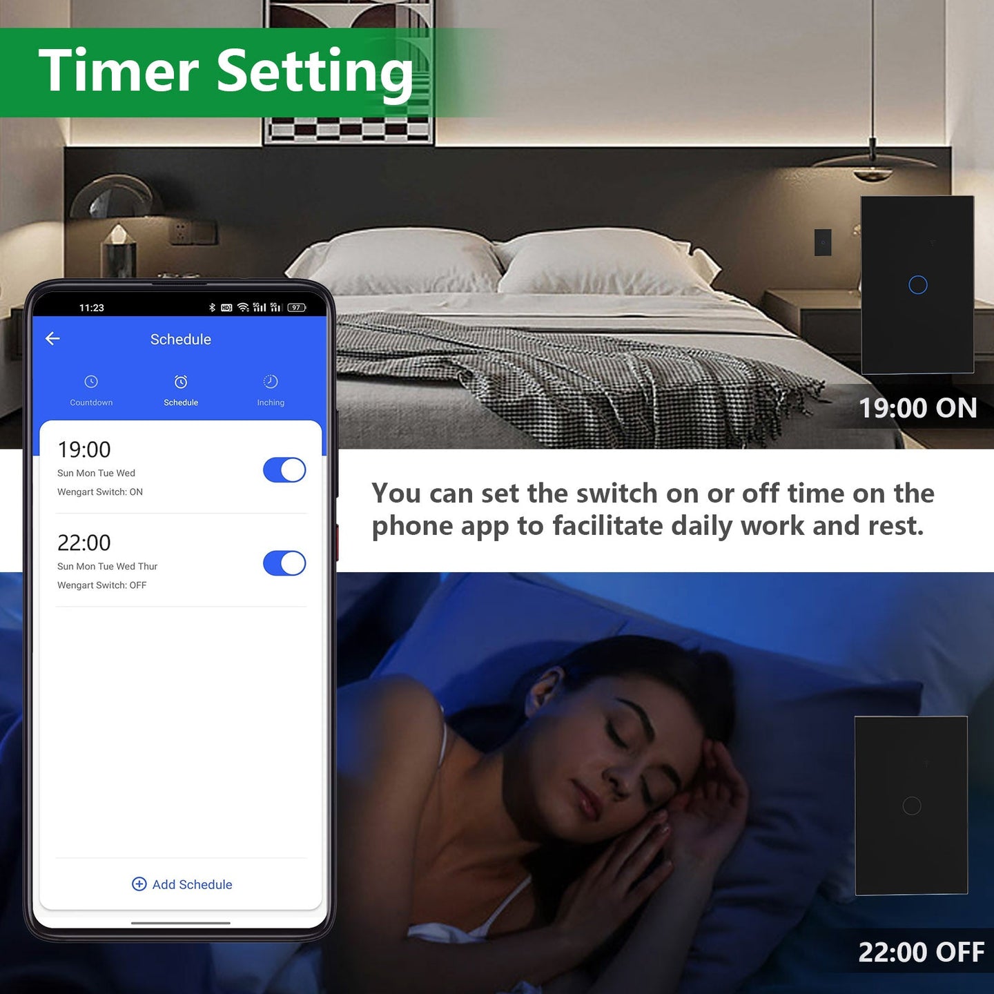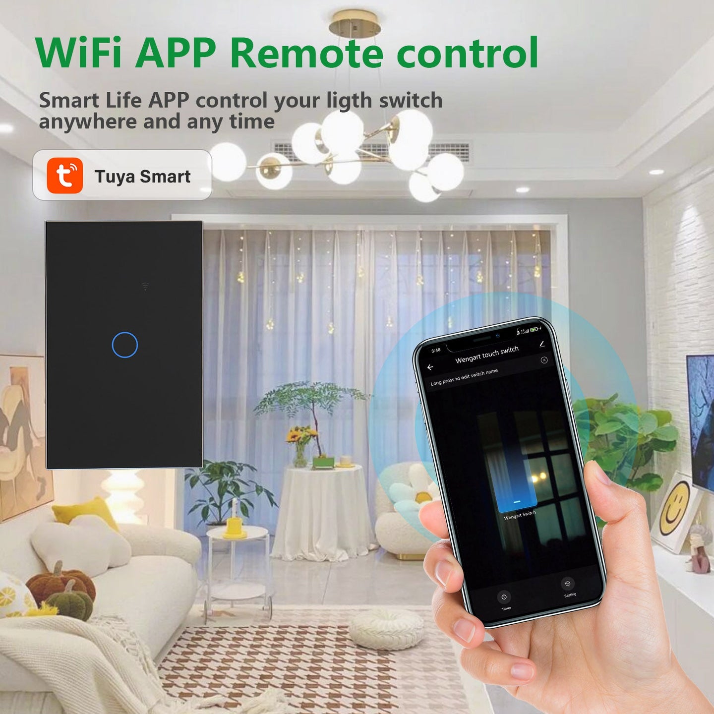 3. The wifi light switch has touch sensitivity and elegant appearance, with capacitive touch control, just one touch to turn on/off the light