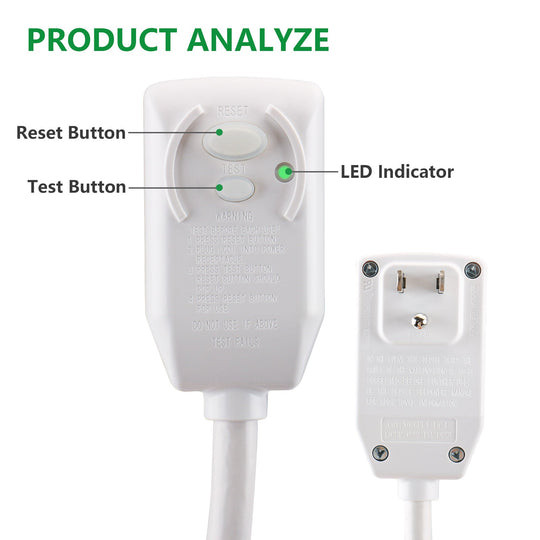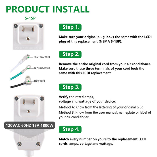Wengart LCDI Power Cord Plug NEMA5-15P Air Conditioning Extension Cable AC120V 60Hz 15Amp