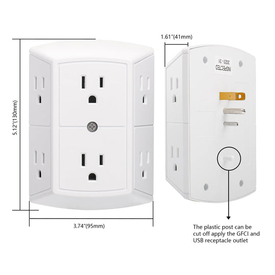 Wengart Multi Plug Outlet Extender AC125V 15Amp 6 Outlet Extender