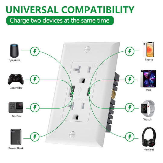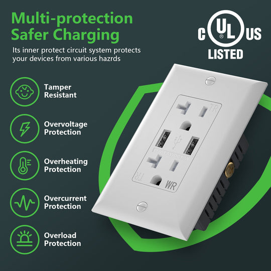 Wengart 20A USB Wall Outlet,Receptacle with 5.0A Dual Type A USB,Weather-Resistant and Tamper-Resistant