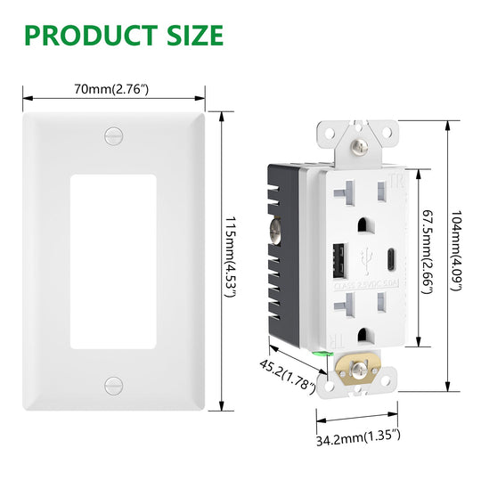 Wengart 20A USB Wall Outlet,Receptacle with 5.0A USB Type C&Type A Ports