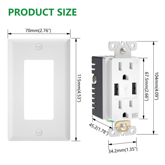 Wengart 15A USB Wall Outlet,Receptacle with 5.0A Dual Type A USB,Weather-Resistant and Tamper-Resistant