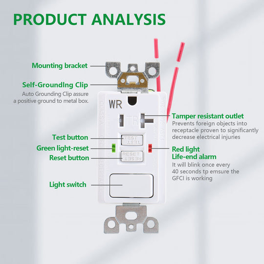 Our GFCI receptacle has a single pole switch, which can be used as a normal switch after wiringOur GFCI outlets use enhanced corrosion-resistant materials, which can withstand more humid places of use, effectively avoiding dangerous electric...Regular price $13.29Regular price $13.29
