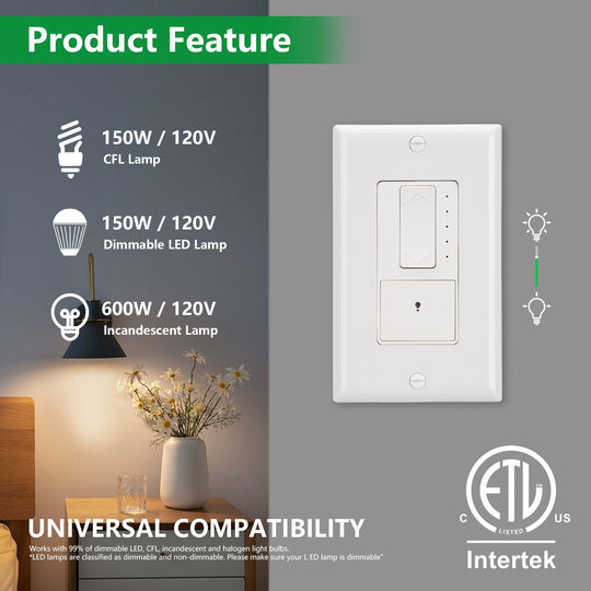 1. Compatible with 3-way and single-pole wiring applications, our slide control dimmer is perfect for any room in your home, say goodbye to harsh lights and hello to a warm, inviting ambience2. Our dimmer switches work...Regular price $13.59Regular price $13.59 -