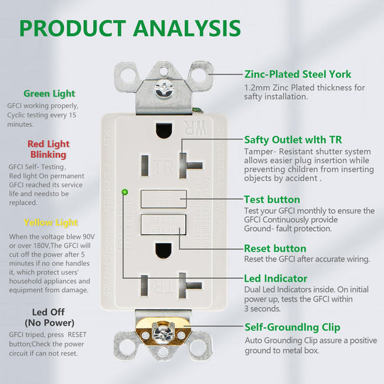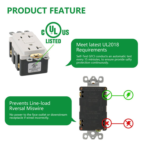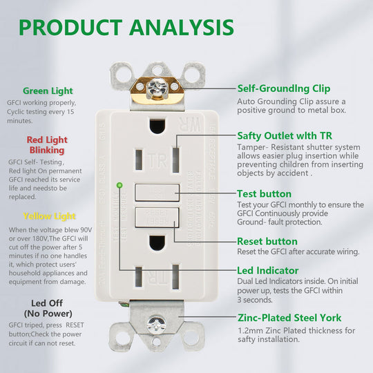 1. Our GFCI outlet will automatically perform a self-test every 40 seconds (the red light will flash once) to ensure that the GFCI continues to work, which is very suitable for use in homes, offices, hospitals,...Regular price $10.99Regular price $10.99 -