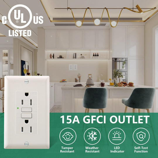 Wengart GFCI Outlet 15Amp,Weather-Resistant and Tamper-Resistant Receptacle,Meet UL2018