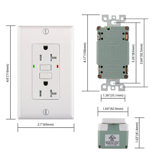 Wengart 20A GFCI Outlet Tamper Resistant,Weather Resistant,Automatic Tripping when Leakage Protection Fails