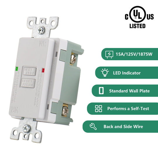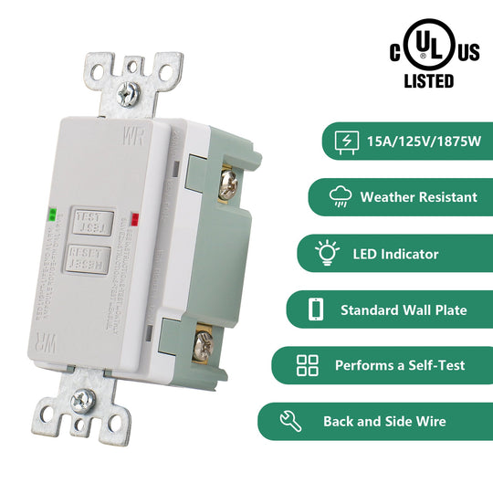 Wengart 15A GFCI Outlet Tamper Resistant,Weather Resistant,Automatic Tripping when Leakage Protection Fails