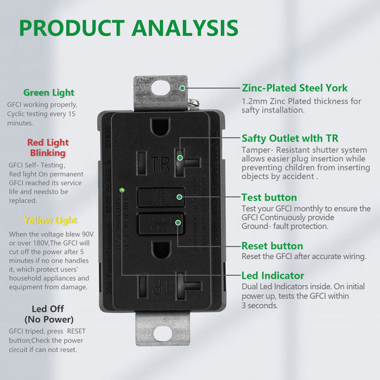 1. This GFCI outlet has an automatic trigger function. If the GFCI can no longer provide ground fault protection, the red light will immediately light up and automatically interrupt the power supply to protect you and...Regular price $10.69Regular price $10.69