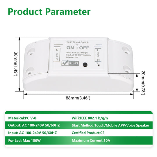 Wengart WiFi Relay Switch,AC100-240V 10Amp,2.4GHz Ewelink App