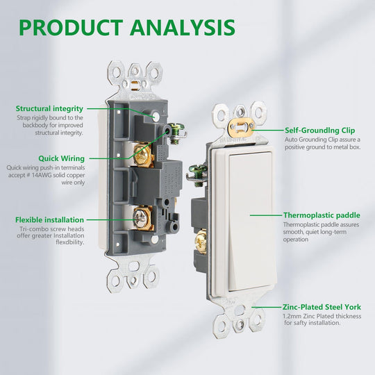 Wengart Double Toggle Light Switch,15Amp 120Volt