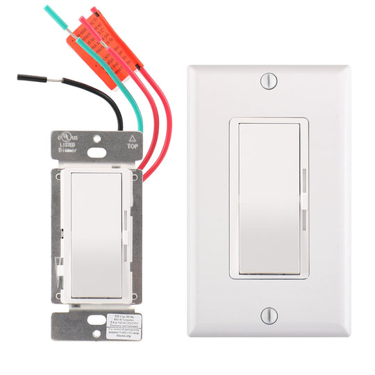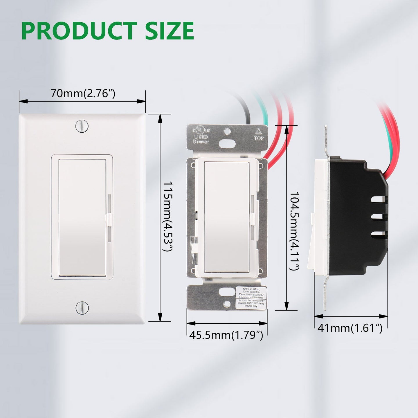 4. Our dimmer switch fits all standard switch boxes and can be easily installed with the included decorative wall plate and mounting screws