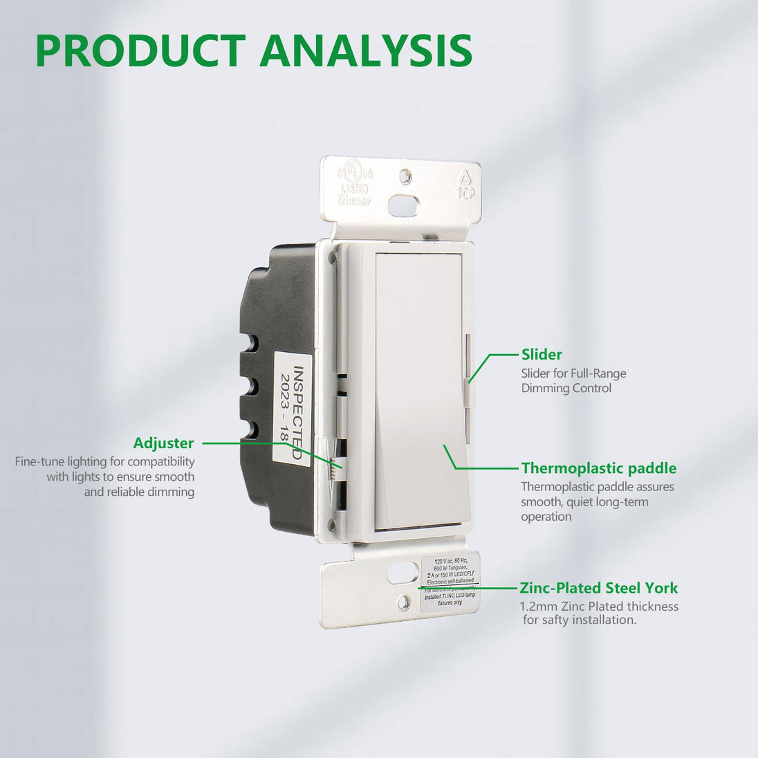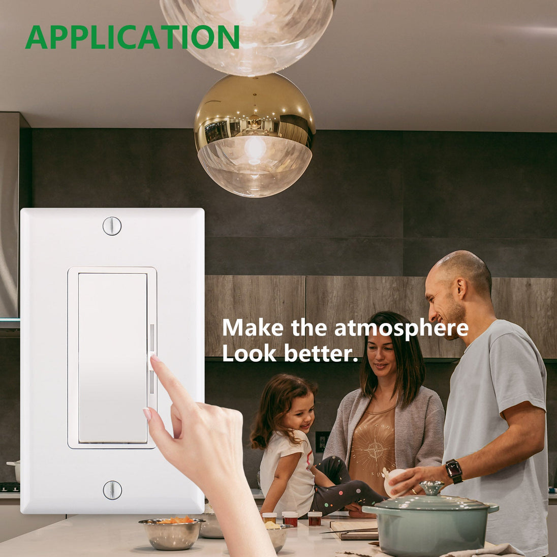 3. Enjoy smooth, flicker-free dimming with our dimmer switch with vertical slide control, perfect for living room, bedroom, etc.