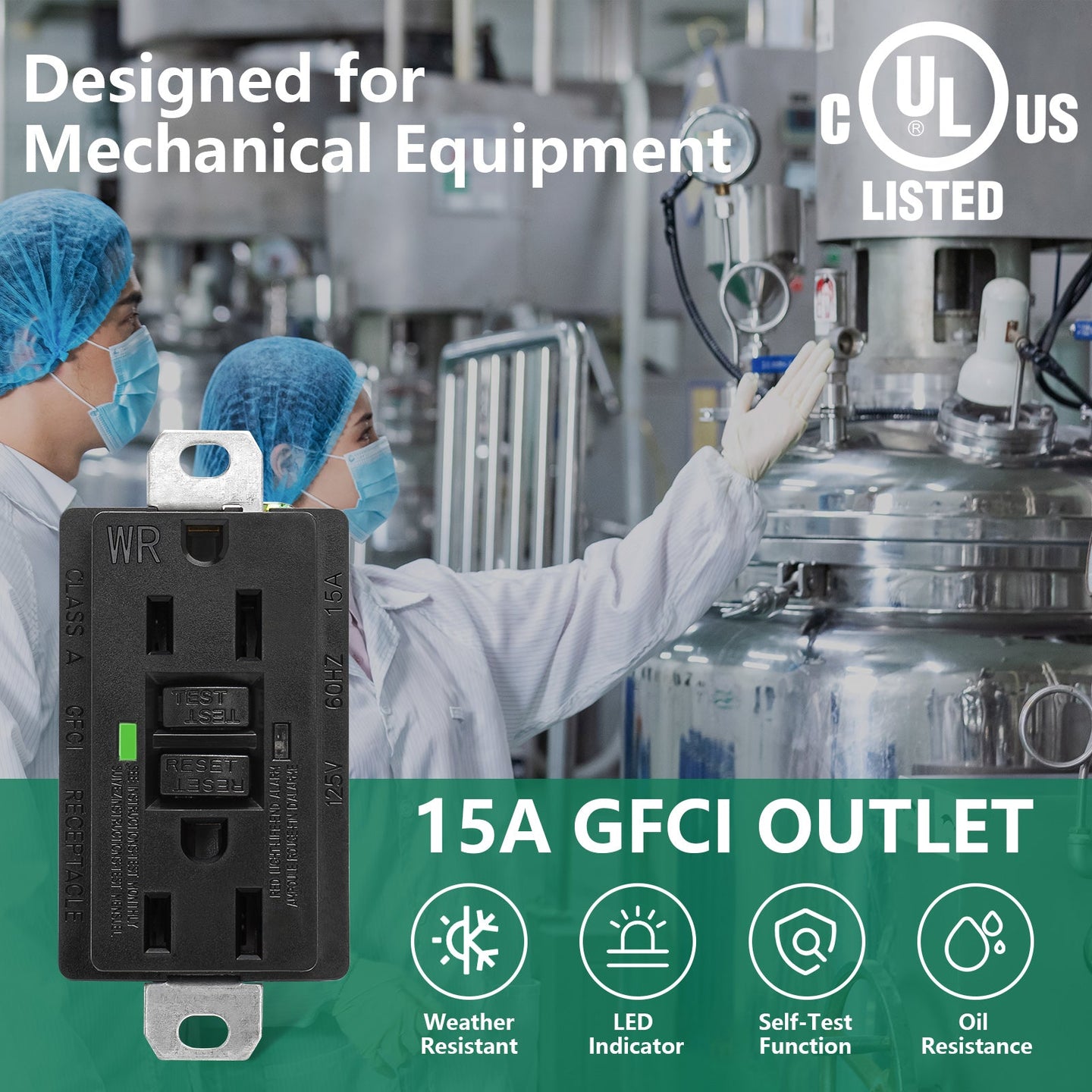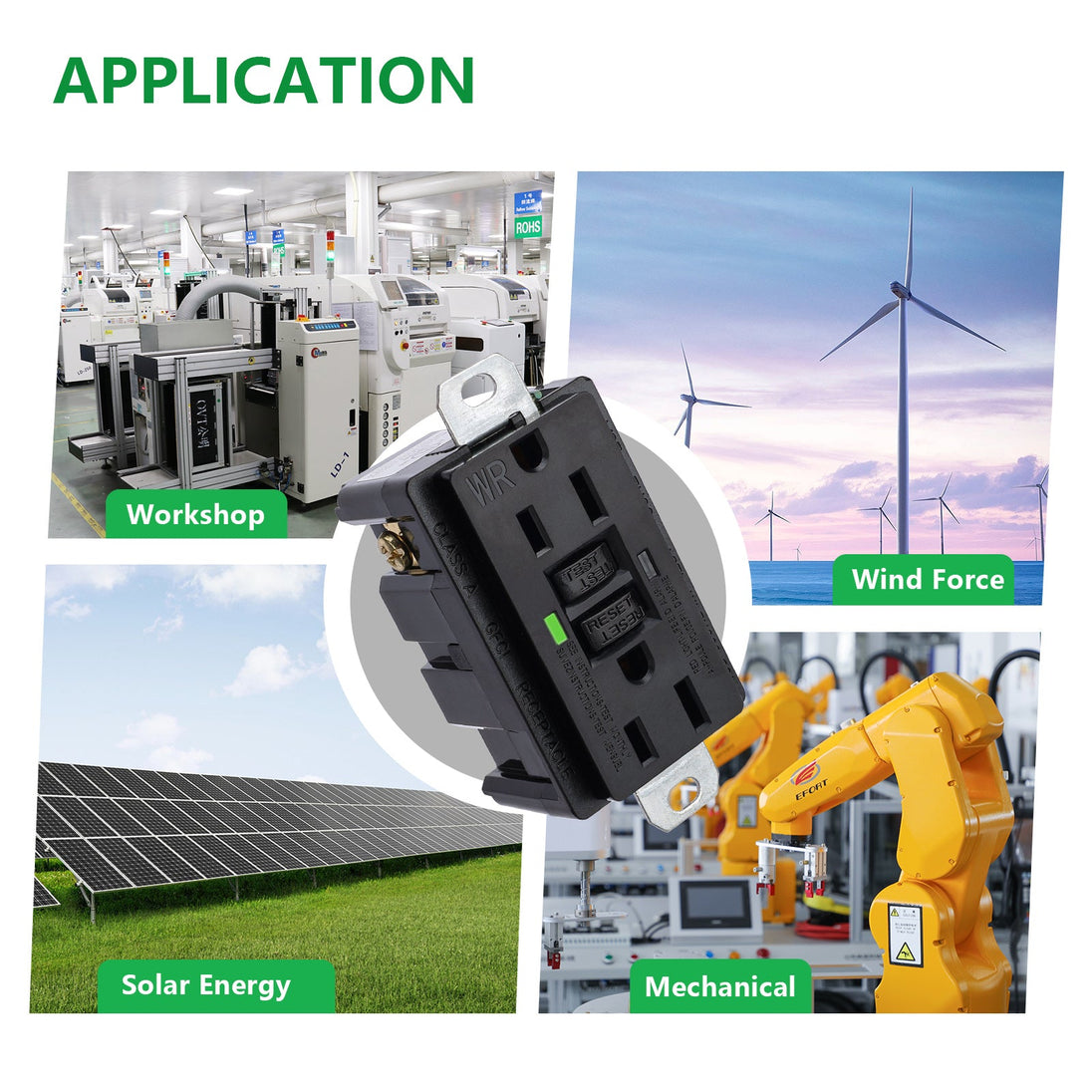 5. This GFCI receptacle complies with the high quality standard and safe operation of home, office, bedroom and bathroom, which can continuously protect against ground faults and prevent personal injury and electrical fire risks caused by ground faults.