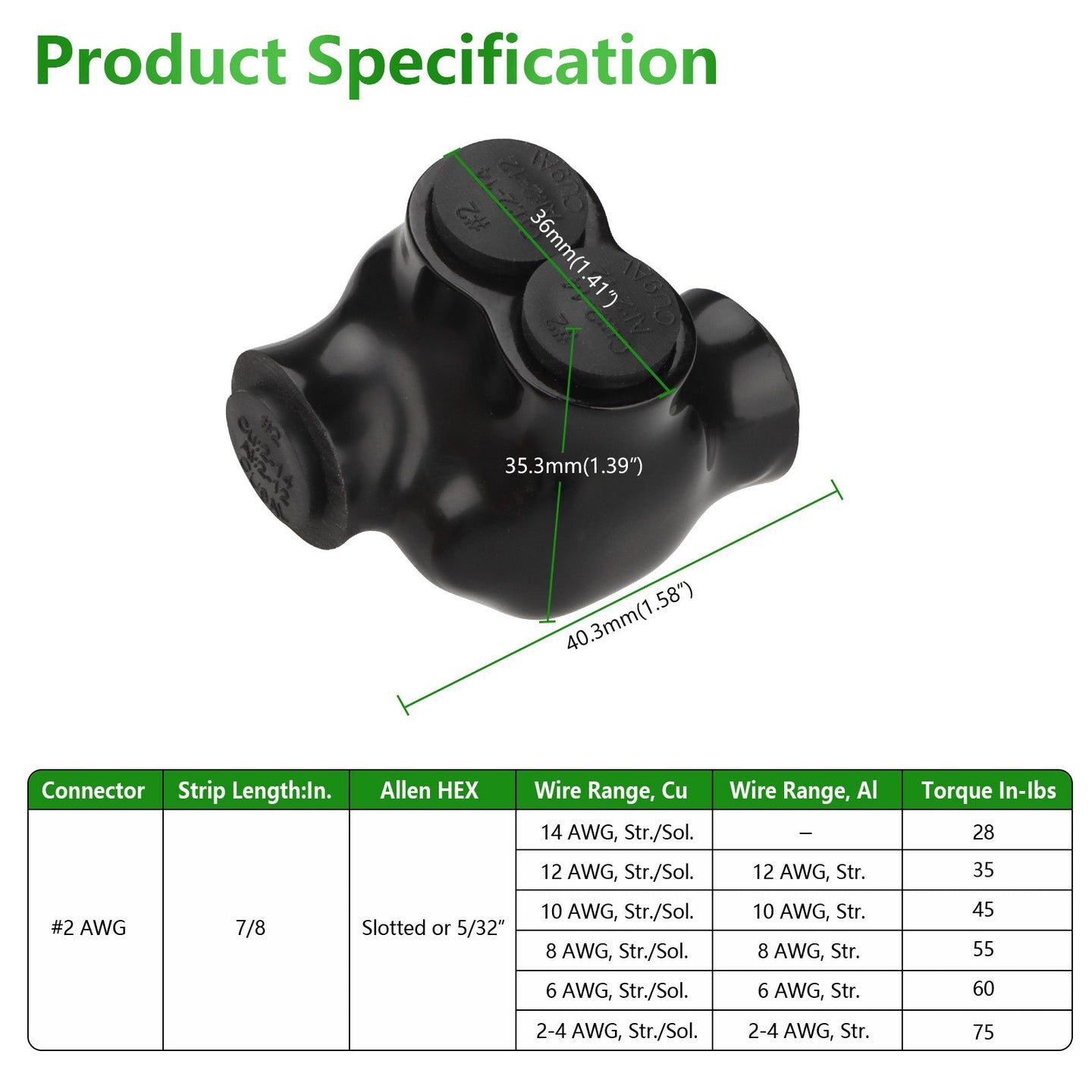 3. This wire splice connector is made from sturdy 6061-T6 aluminum CU9AL for durability and is insulated with high dielectric strength plastisol for enhanced chemical and abrasion protection.