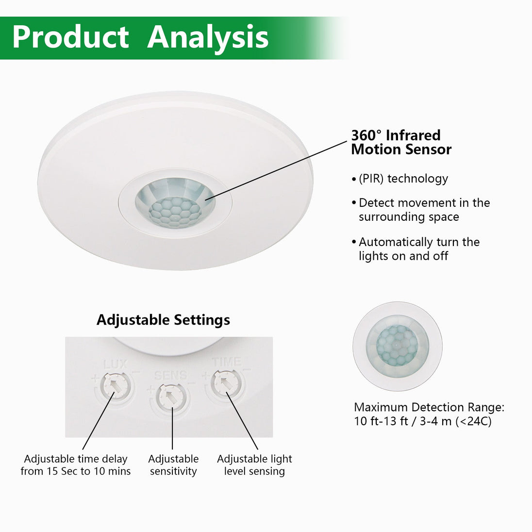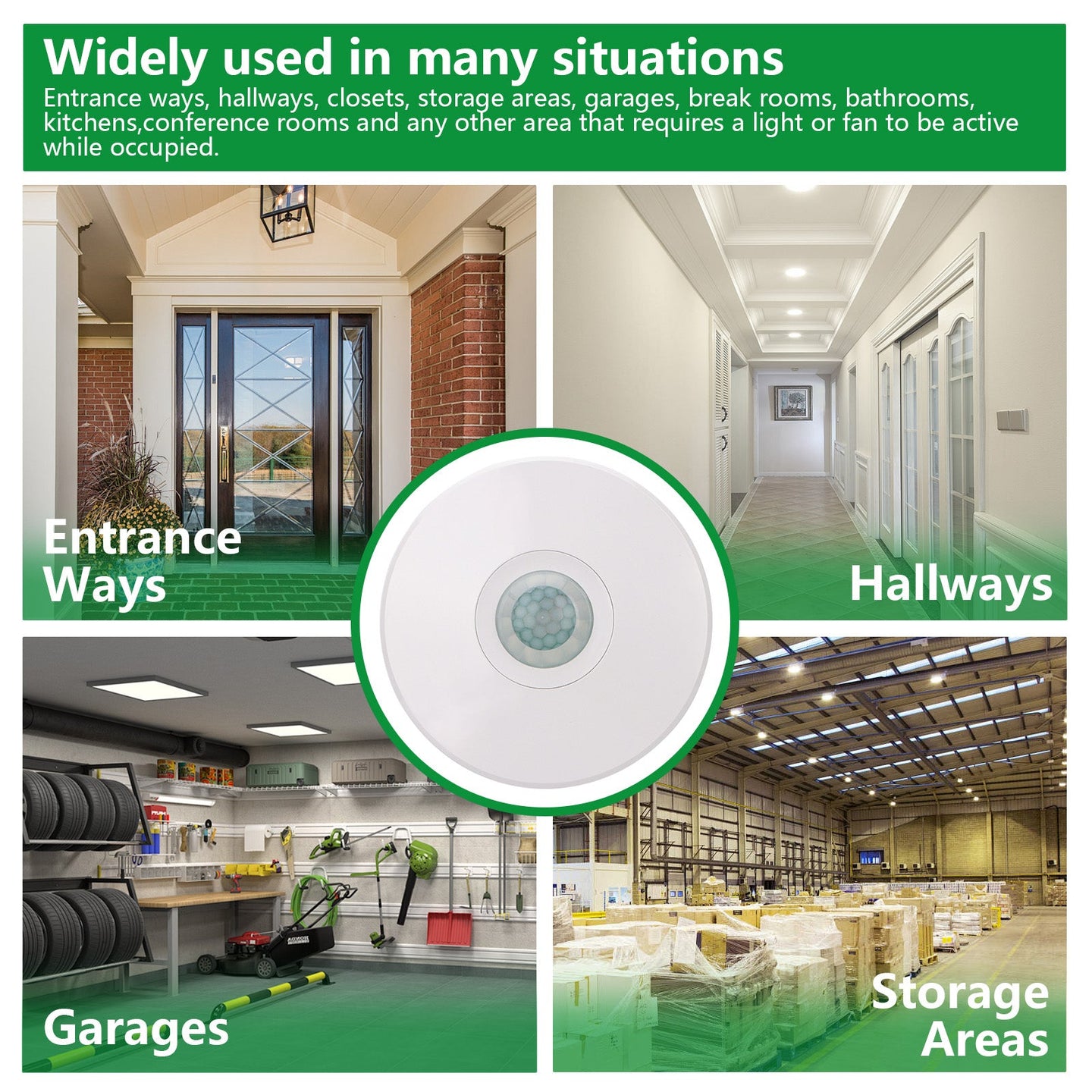 1. This ceiling motion sensor uses advanced infrared sensing technology, which can automatically sense human activities and control light switches to achieve intelligent lighting control.