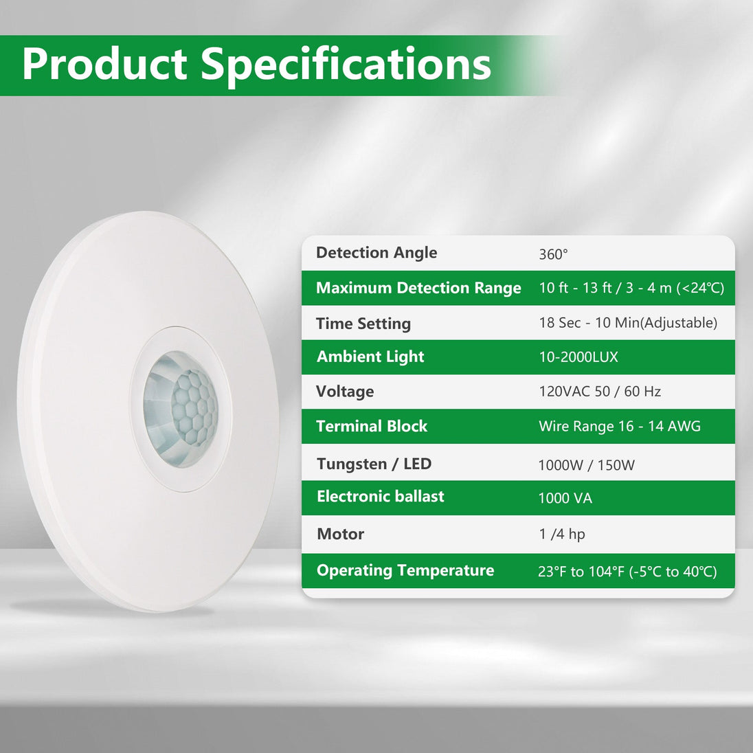 Wengart PIR Ceiling Sensor Switch AC120V Single Pole,360° Sensor Coverage Neutral Wire Required
