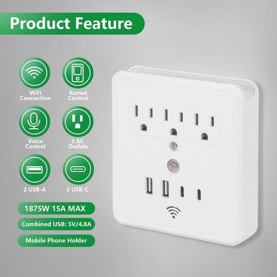 Wengart WIFI Outlet With USB BAA-032,2.4GHz Compatible with Alexa and Google Assistant 125VAC 15A