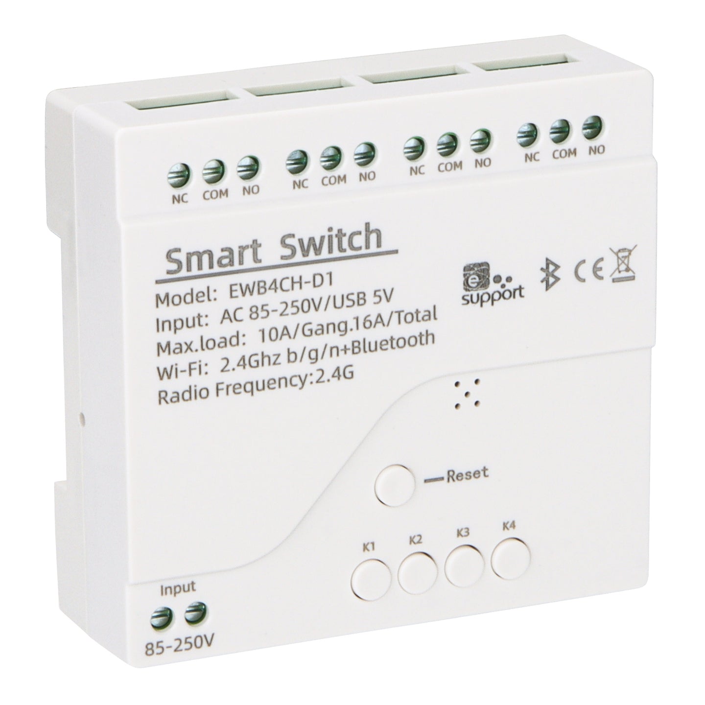Wengart Smart WiFi Relay Switch,AC85-250V 10Amp,4 Channel Dry Contact Relay Switch Module 2.4GHz Ewelink App
