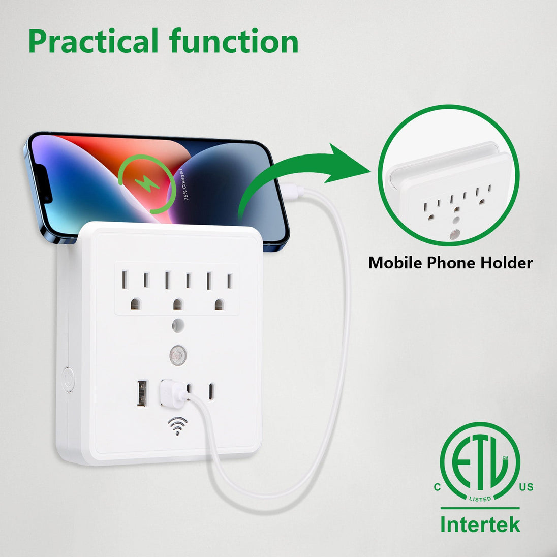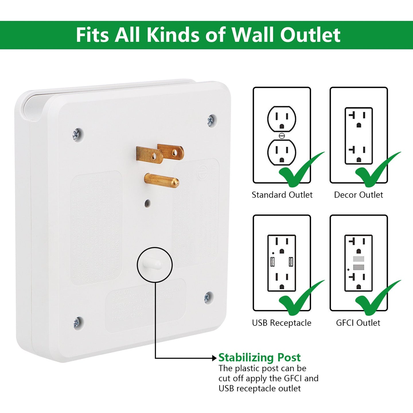 Wengart Multi Plug Outlet Extender BCU-002,125VAC 15A Automatic Night Light Surge Protector