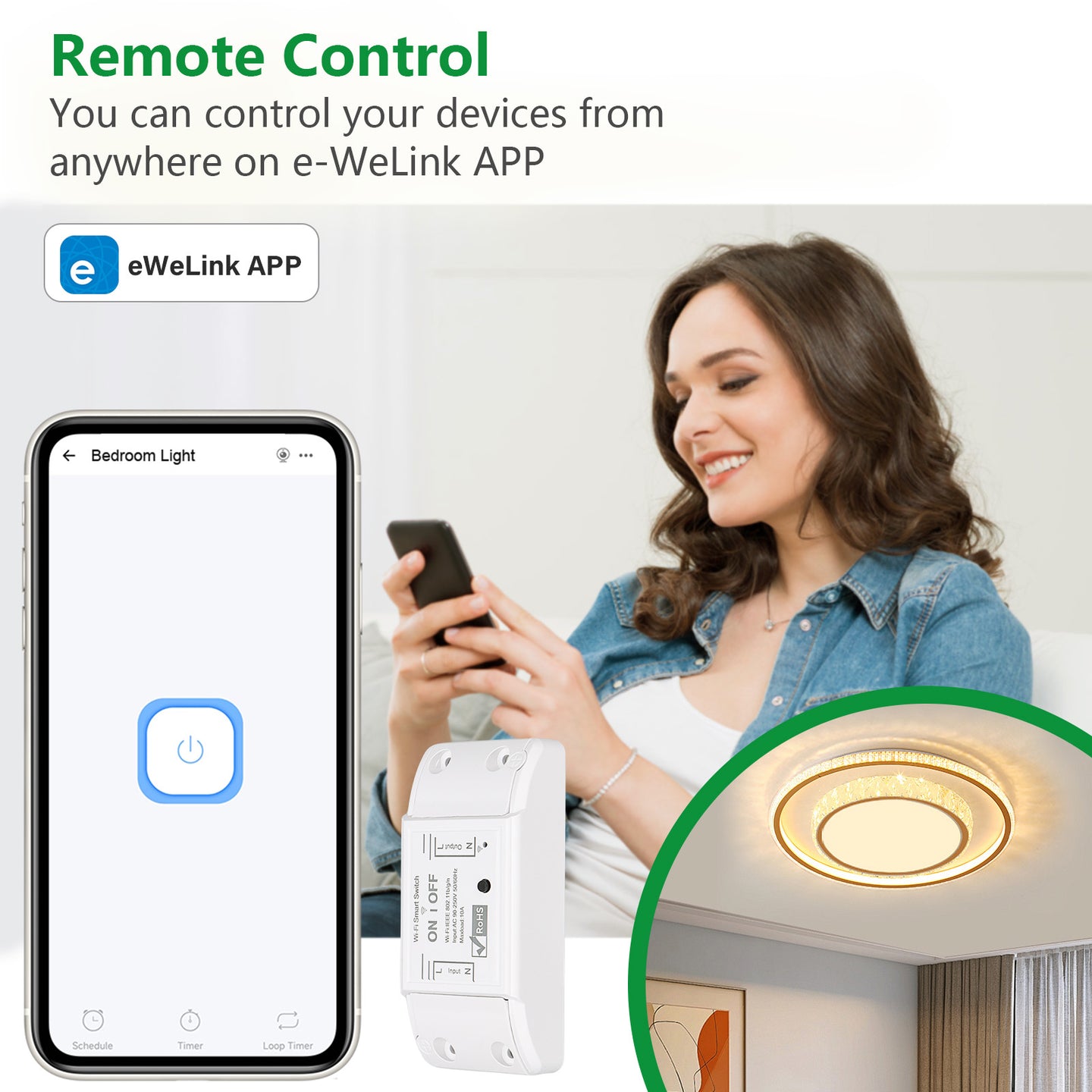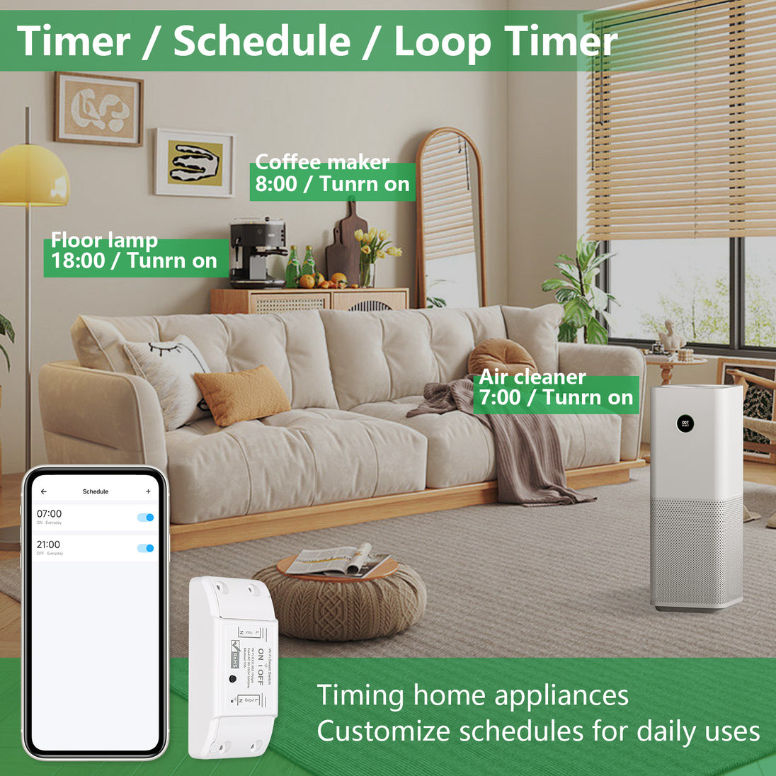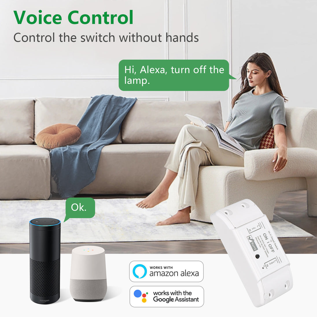 - Multi-platform compatibility and sharing: This WiFi relay module is compatible with mainstream smart voice platforms such as Amazon Echo and Google Home. The APP displays the device status in real time, allowing you to conveniently manage home devices