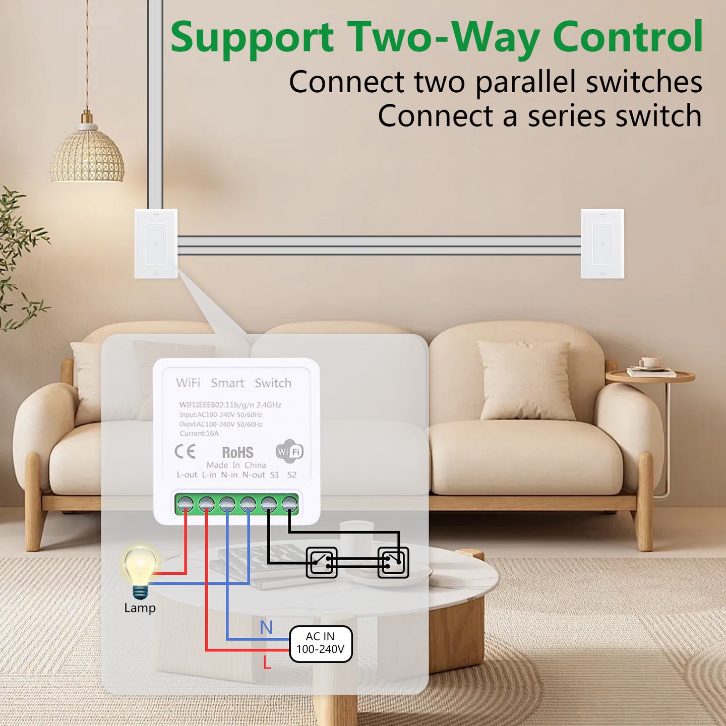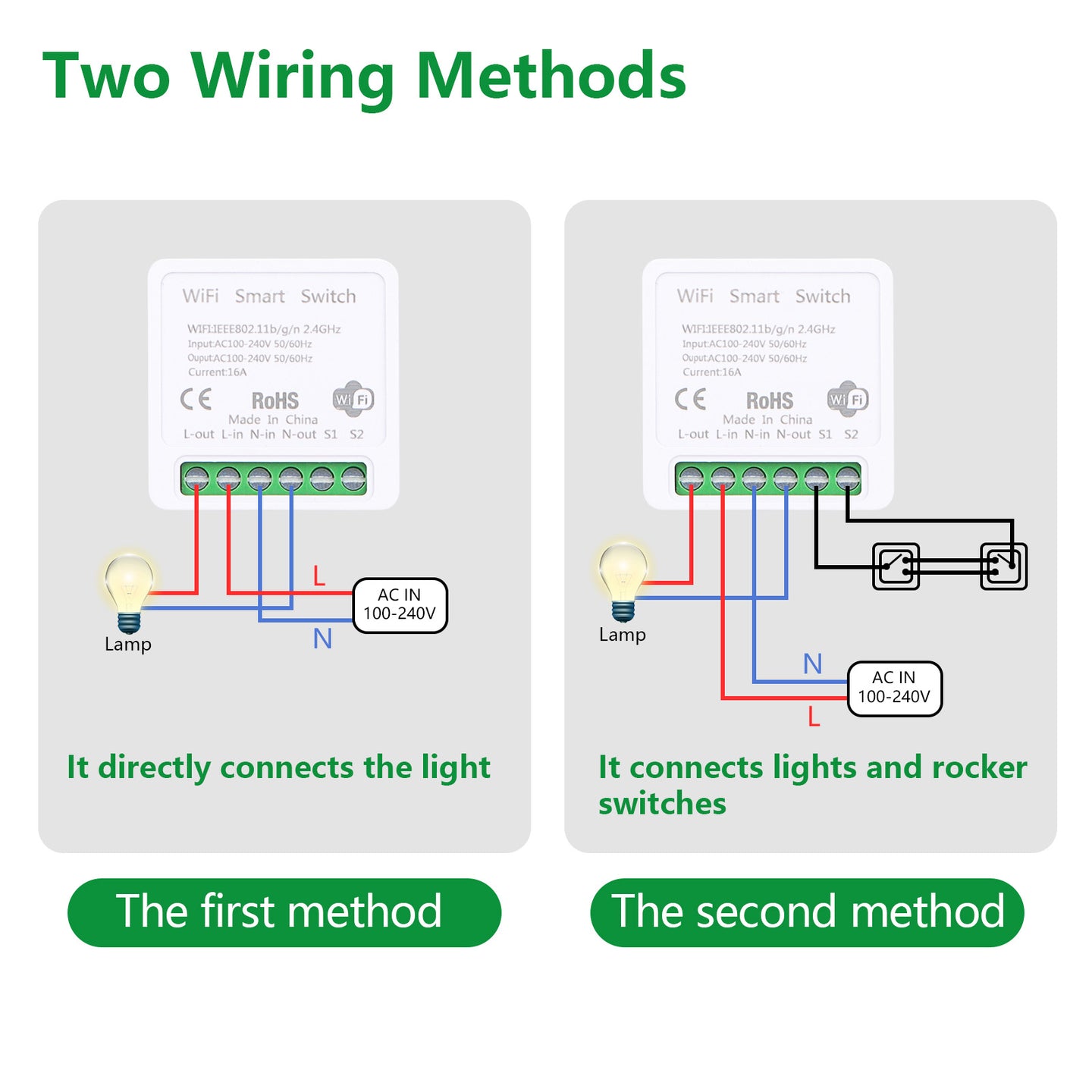 - Ultra-small design: This WiFi smart switch adopts MINI main body design and can be directly installed in the switch bottom box, without taking up extra space, and is simple and quick to install