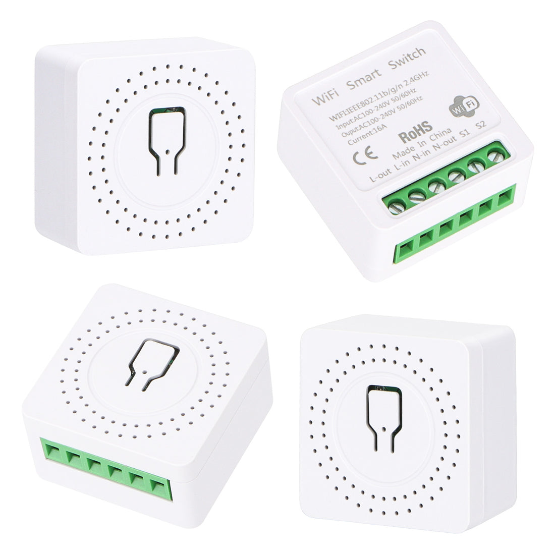 The WiFi relay switch is a smart home device that combines WiFi wireless communication technology with traditional relay switch functions. This device allows users to remotely control the switching of electrical appliances through smartphones, tablets or other WiFi-enabled devices. Through the WiFi network, users can control devices connected to the relay from anywhere. It is not limited by physical distance and can be operated as long as there is a network connection. You can set the automatic switching time to achieve automatic control of the device. It is suitable for devices that need to be switched on and off regularly, such as water heaters, lights, etc. The WiFi relay switch is compatible with voice assistants such as Amazon Alexa and Google Home. The device can be controlled by voice commands. You can set the linkage of multiple devices to create specific scene modes. For example, you can set the "home mode" with one click to turn on multiple devices at the same time. The WiFi relay switch provides users with a more intelligent and convenient way to control home appliances, and is an important part of the modern smart home system. It not only improves the convenience of life, but also helps optimize energy use and improve the quality of home life. Specification: