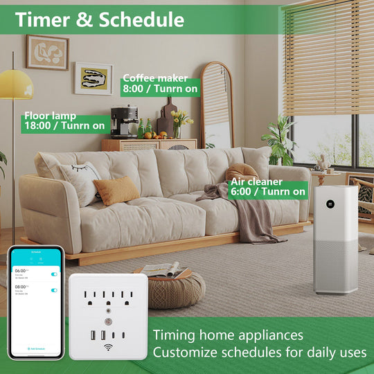 Wengart WIFI Outlet With USB BAA-032,2.4GHz Compatible with Alexa and Google Assistant 125VAC 15A