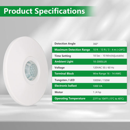 This ceiling mounted motion sensor is a device installed on the ceiling that senses human motion and controls the on/off of lights or other electrical devices. This sensor uses infrared sensing technology to detect human heat...Regular price $10.99Regular price $10.99 -