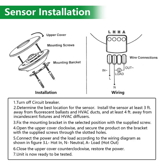 Wengart PIR Ceiling Sensor Switch AC120V Single Pole,360° Sensor Coverage Neutral Wire Required