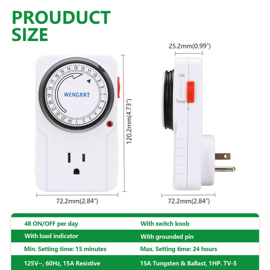 Wengart Plug-in Mechanical Timer U39N,AC125V 15Amp
