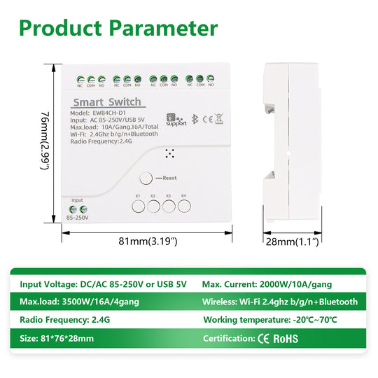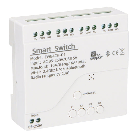 Wengart Smart WiFi Relay Switch,AC85-250V 10Amp,4 Channel Dry Contact Relay Switch Module 2.4GHz Ewelink App