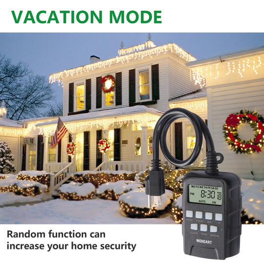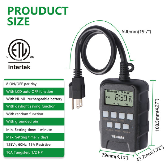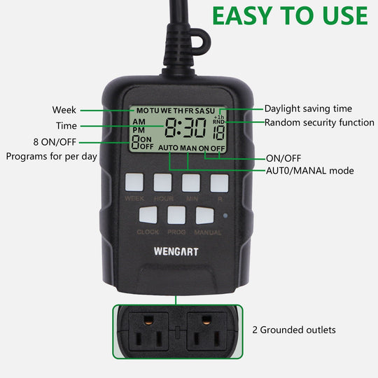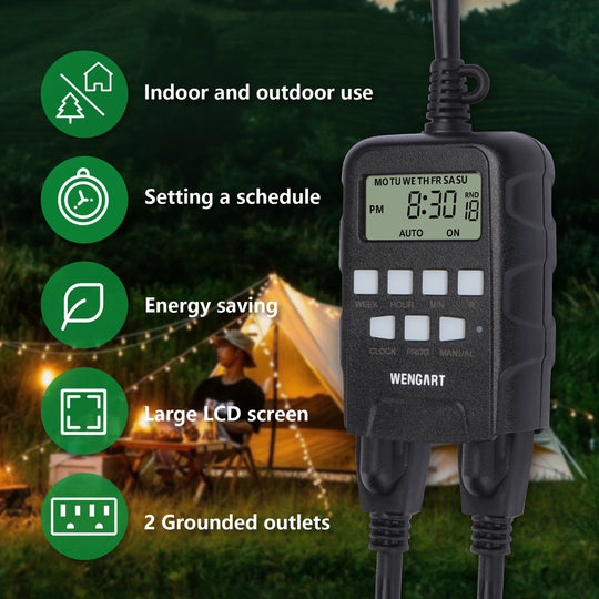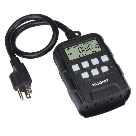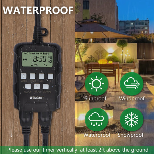 Wengart Outdoor Digital Timer,7 Day Programmable,Dual Outlet 125VAC 1875W,Weatherproof