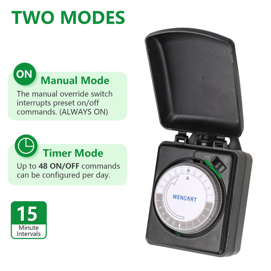 Wengart Heavy Duty Mechanical Timer U58,Two Grounded Outlets,AC125V 15Amp