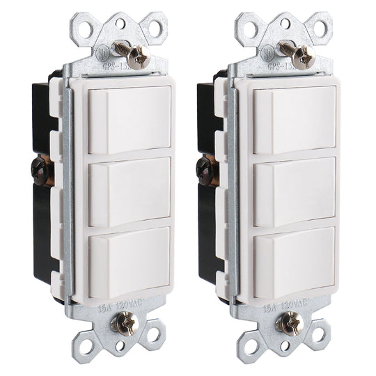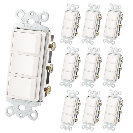 Wengart Triple Rocker Combination Decorator Switch,10Pack,15Amp 120-277VAC,Ground terminal,Residential/Commercial Grade,3 Individual Switches,UL Listed