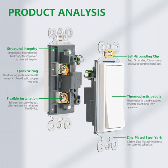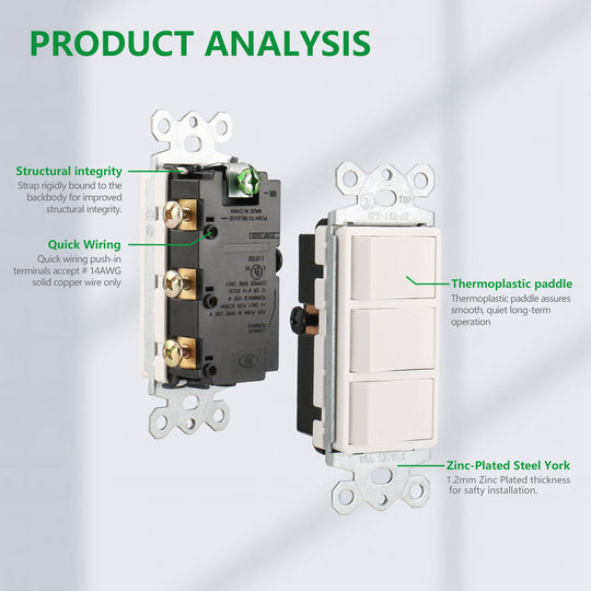 1. Enjoy the tranquility of your home with the smooth and quiet on/off paddle action and modern decorative design of these light switches.2, These wall light switches have a smooth surface and 15A 120V-277VAC rating, suitable...Regular price From $20.57Regular price From $20.57 -