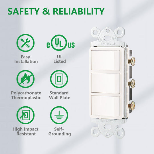 1、These three rocker switches can easily manage multiple devices, you can control exhaust fans, lights, heaters, night lights and more with just one switch, saving space2、Constructed of impact-resistant polycarbonate thermoplastic and solid steel for extended life,...Regular price $37.89Regular price $37.89 -